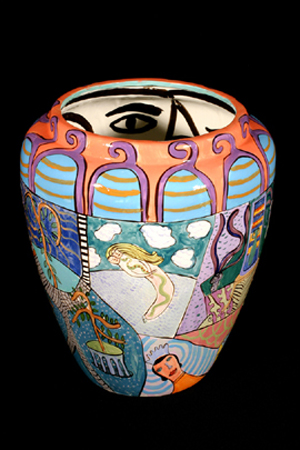 Vase, with mosaic look, 2004 (earthenware-slip/underglazes and glazes/28" X 4" X 9")